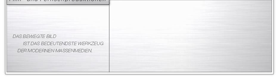 Sagen Sie uns, welchen Film Sie im Kopf haben und wir lassen ihn Wirklichkeit werden. Ständig suchen wir nach neuen Ideen, um Produkte und Unternehmen noch faszinierender ins Bild zu setzen. Braig-Productions arbeitet eng mit kreativen Autoren, Redakteuren, Kameraleuten, Regisseuren, Cuttern, Komponisten und Sprechern zusammen. Wir bieten Ihnen einen All-In-One-Service für die Realisierung Ihrer Konzepte. Ob im TV, Kino oder World Wide Web wir produzieren mit modernster Technik Ihren Film in ein ansprechendes Format. |